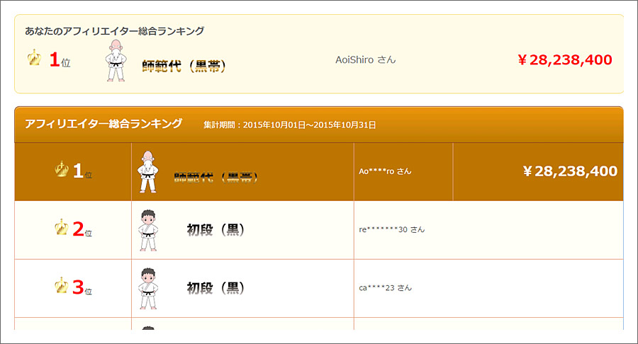 2015年10月の報酬画面。1つの商品で1ヶ月2800万以上を得ました。