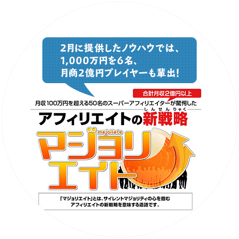 2016年2月に自身の手法を体系化した「マジョリエイト」というセミナー教材をリリースしたことろ、参加者の中にマジョリエイトの手法を使い、月間2億円を突破したという方も現れる。さらに、半年以内に月間1,000万突破者も6人以上輩出し、100万円以上のアフィリエイターも50名以上輩出するなど、通常では考えられない実績を出し続けている。